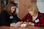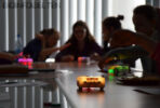 Sebastian hat auch ein paar Agenten mitgebracht: kleine Roboter, denen ein bestimmtes Verhalten programmiert wurde. Als Gruppe zeigen die Roboter komplexe Verhaltensweisen ähnlich dem Verhalten eines Vogelschwarms. Jeder einzelne gehorcht jedoch ganz einfachen Regeln. Welchen Regeln? Das galt es für die Mädchen in kleinen Forschungsteams herauszufinden.